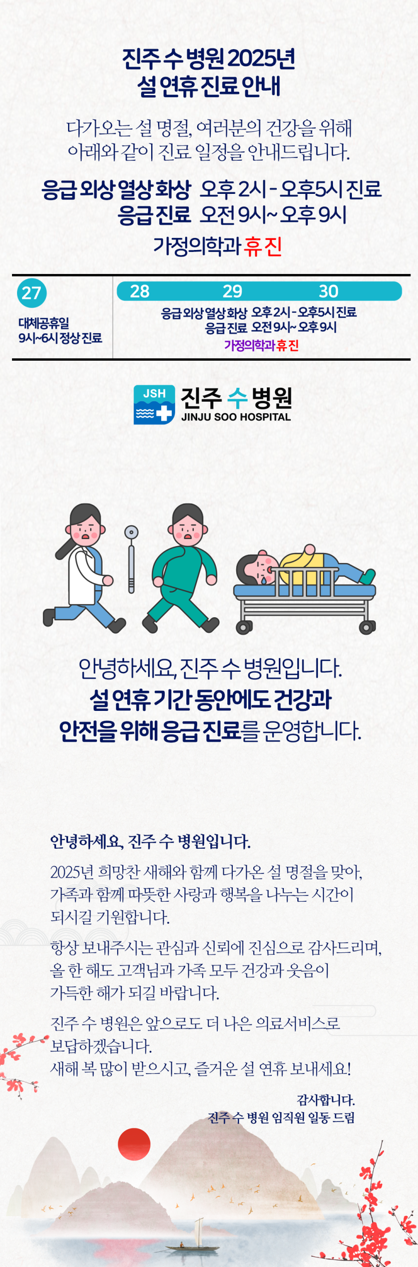 진주 수 병원 2025년 설 연휴 진료 안내